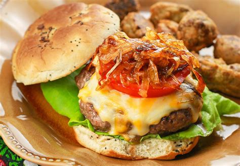 [Image of a venison burger with cheese, lettuce, tomato, and onion] Serve and Enjoy: Serve the venison burgers immediately. Enjoy!